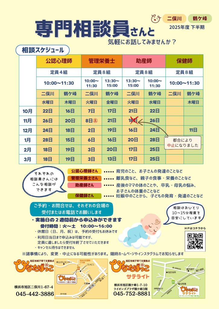 11月18日㈫助産師さんの相談は、都合により中止になりました。