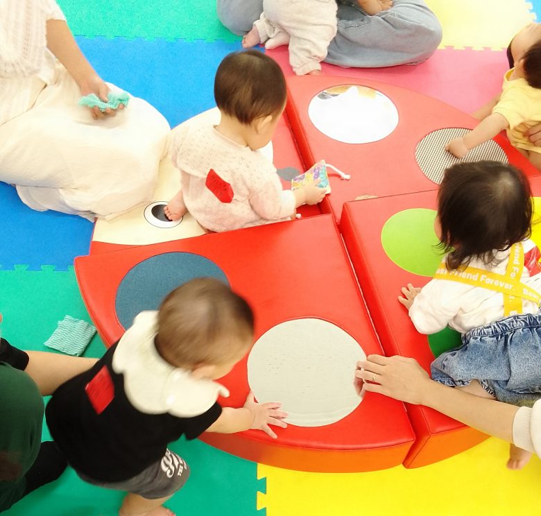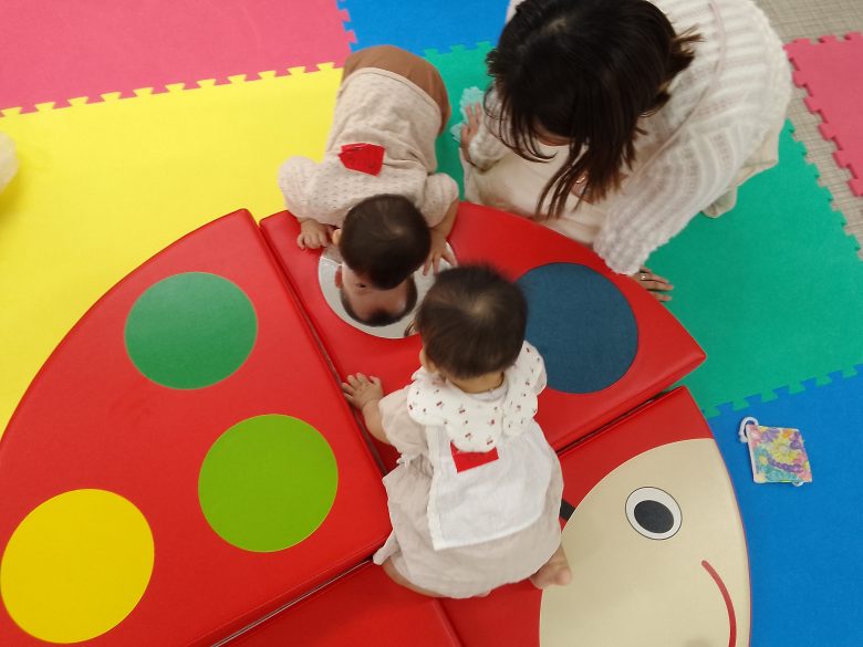 10/9㈭10:30~1時間ほど、月齢の近い11ヶ月までのお子さんとママ・パパがゆったりとおしゃべりしながら過ごす「Babyタイム」を研修室で開催しました。てんとう虫の遊具に乗ってみたり、広い研修室をハイハイしながら動き回ったり、元気に楽しく過ごしました♪