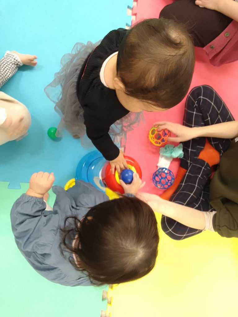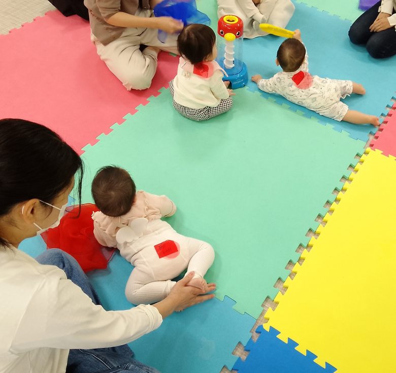 研修室を開放して、0才の赤ちゃんとママ・パパがゆっくり過ごす『Babyタイム』を11/6㈭に開催。今回で4回目になり、10組の親子さんが参加してくれました。対象はずり這い~11ケ月まで赤ちゃんとママとパパ。