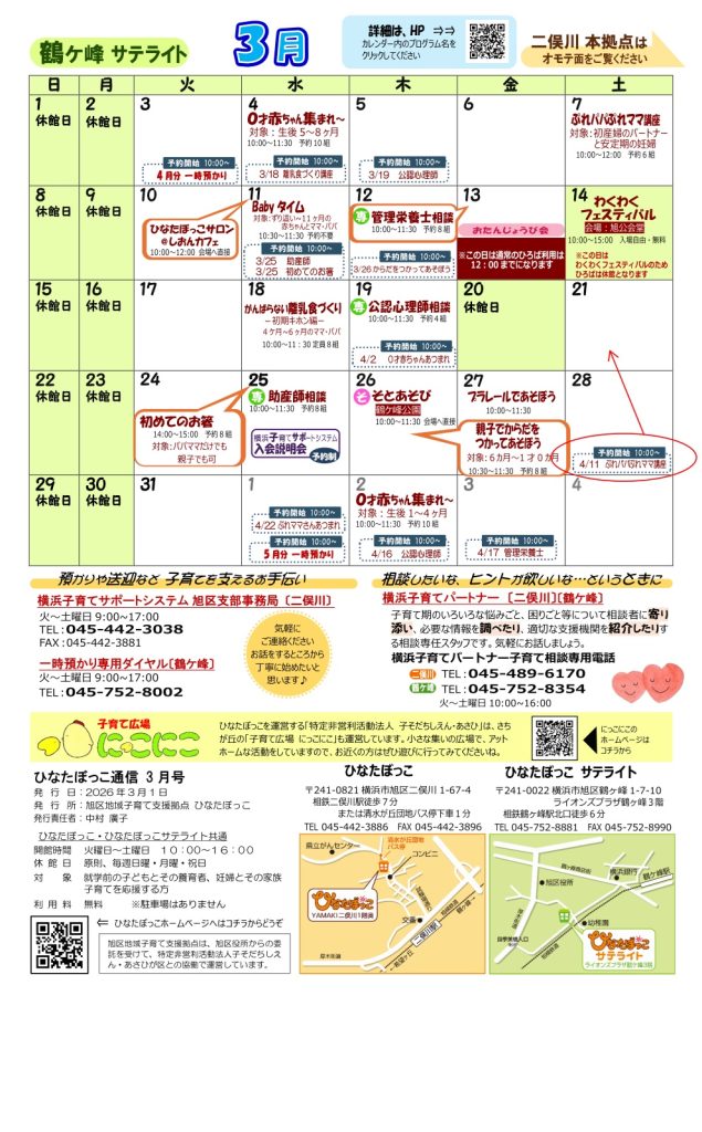 サテライト、ぷれパパぷれママ講座の予約開始日を修正しました。正:3/21㈯予約開始 誤:3/28㈯予約開始